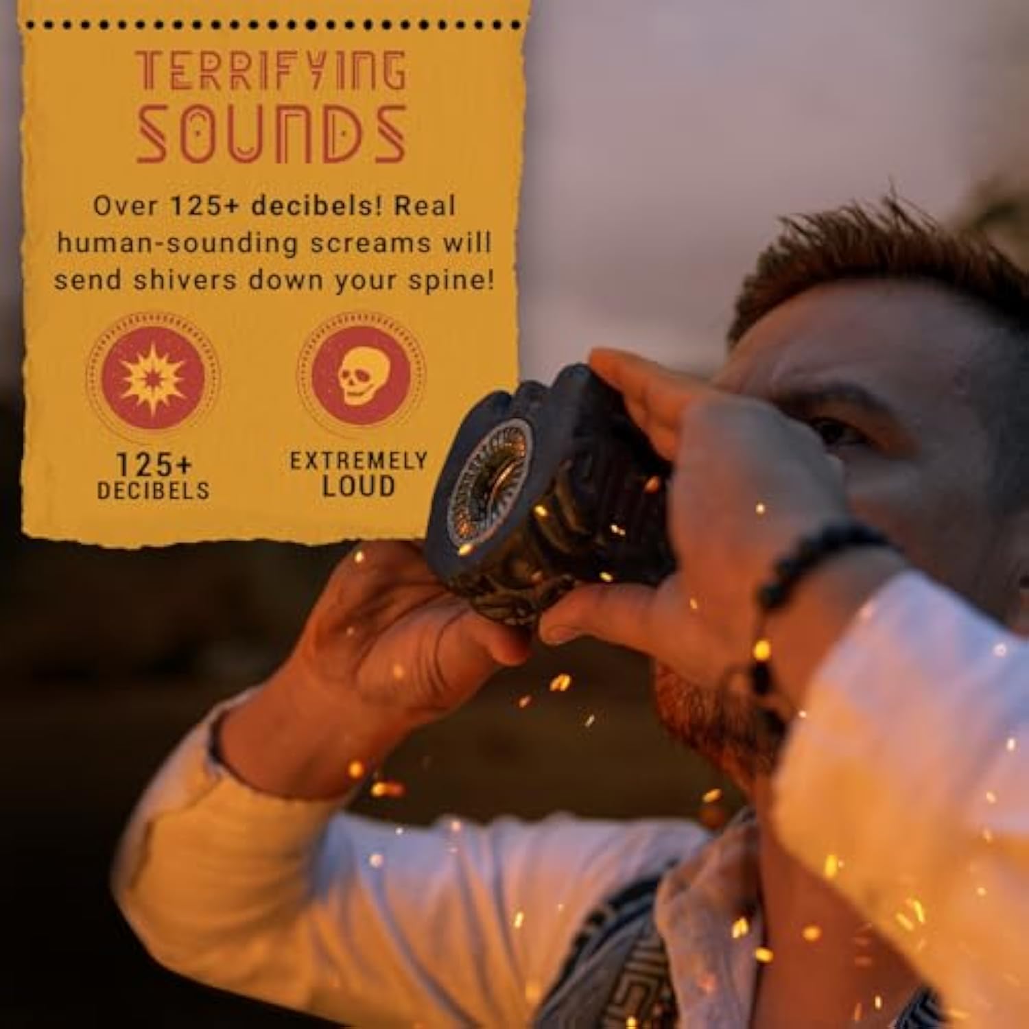The Aztec Death Whistle emits an astonishing 125+ decibels, making it incredibly loud and bone-chilling, perfect for adding a terrifying touch to any event.