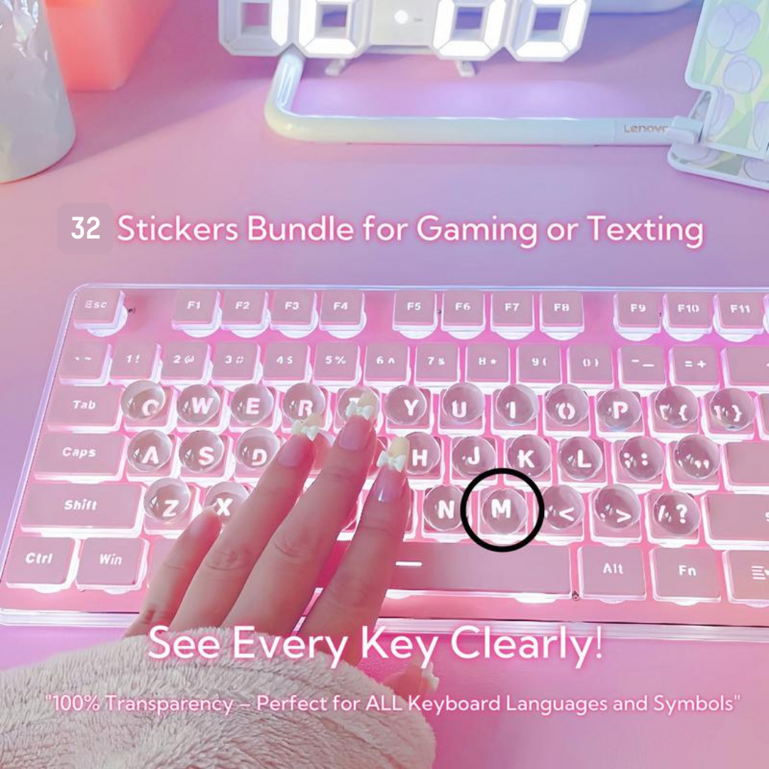 This 32-piece sticker bundle provides ultra-clear transparency, ensuring full visibility of key labels. The strong adhesive stays in place, protecting your nails while typing, whether for gaming or work. Perfect for MacBook, Laptop, or Desktop keyboards.