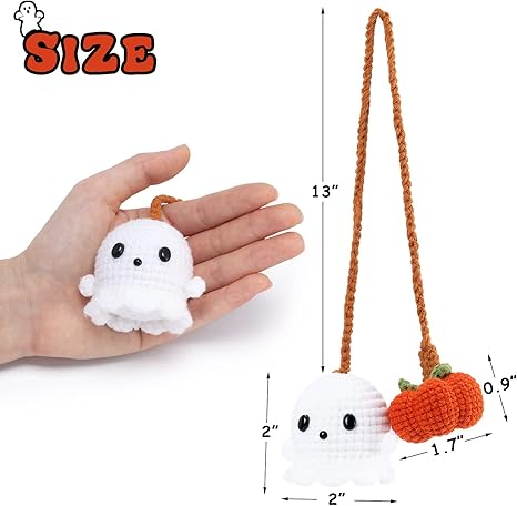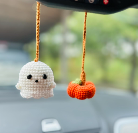 Hand-knitted Pumpkin & Ghost charms add a fun, festive touch to your rearview mirror. Easy to hang with an adjustable thread loop, they bring Halloween cheer to any car. A perfect and unique gift for the season!
