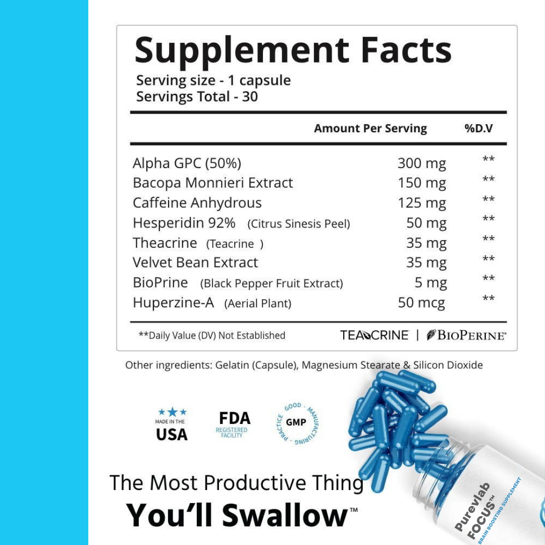 Crush your day with Purevlab Focus, the nootropic designed to help you think sharper, work smarter, and stay locked in—naturally.