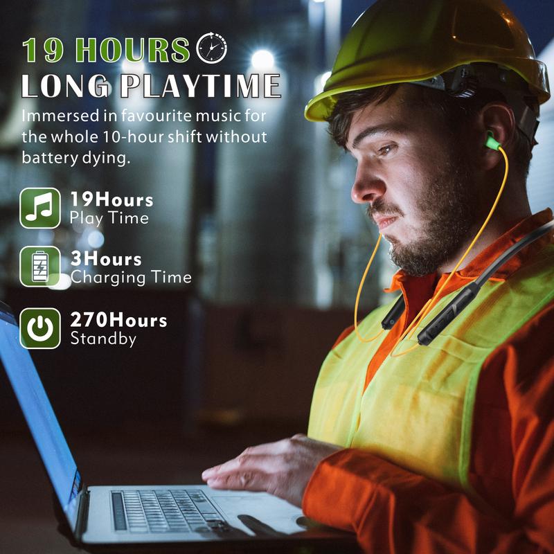 Enjoy up to 19 hours of continuous music playback or clear phone calls on a single charge — perfect for 10–13 hour shifts or long travel days.