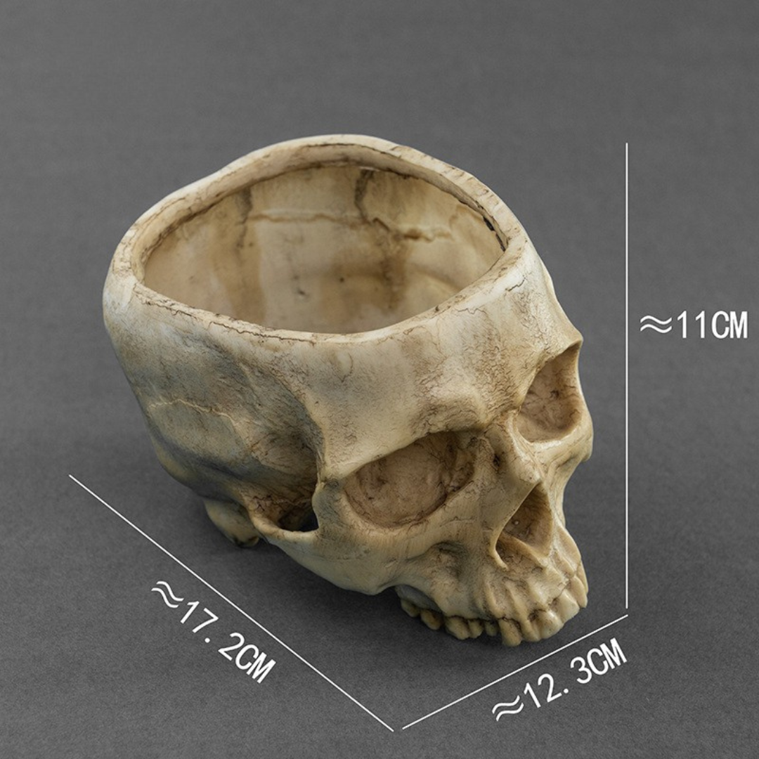 Add a touch of gothic charm and creativity to your home or garden with the Skull Flower Pot. Available in three distinctive colors—white, black, and beige—this skull-shaped planter offers a quirky and bold way to display your plants. Crafted from durable materials, the pot is designed to hold your favorite flowers, succulents, or small plants, making it the perfect statement piece for Halloween or any time of year.