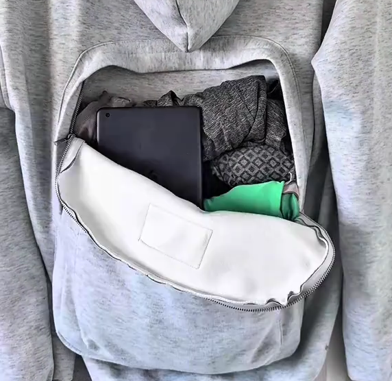 The SwiftCarry Hoodie features large-capacity hidden compartments that can fit your phone, wallet, passport, tablet, and even a change of clothes — perfect for short trips or daily commutes.