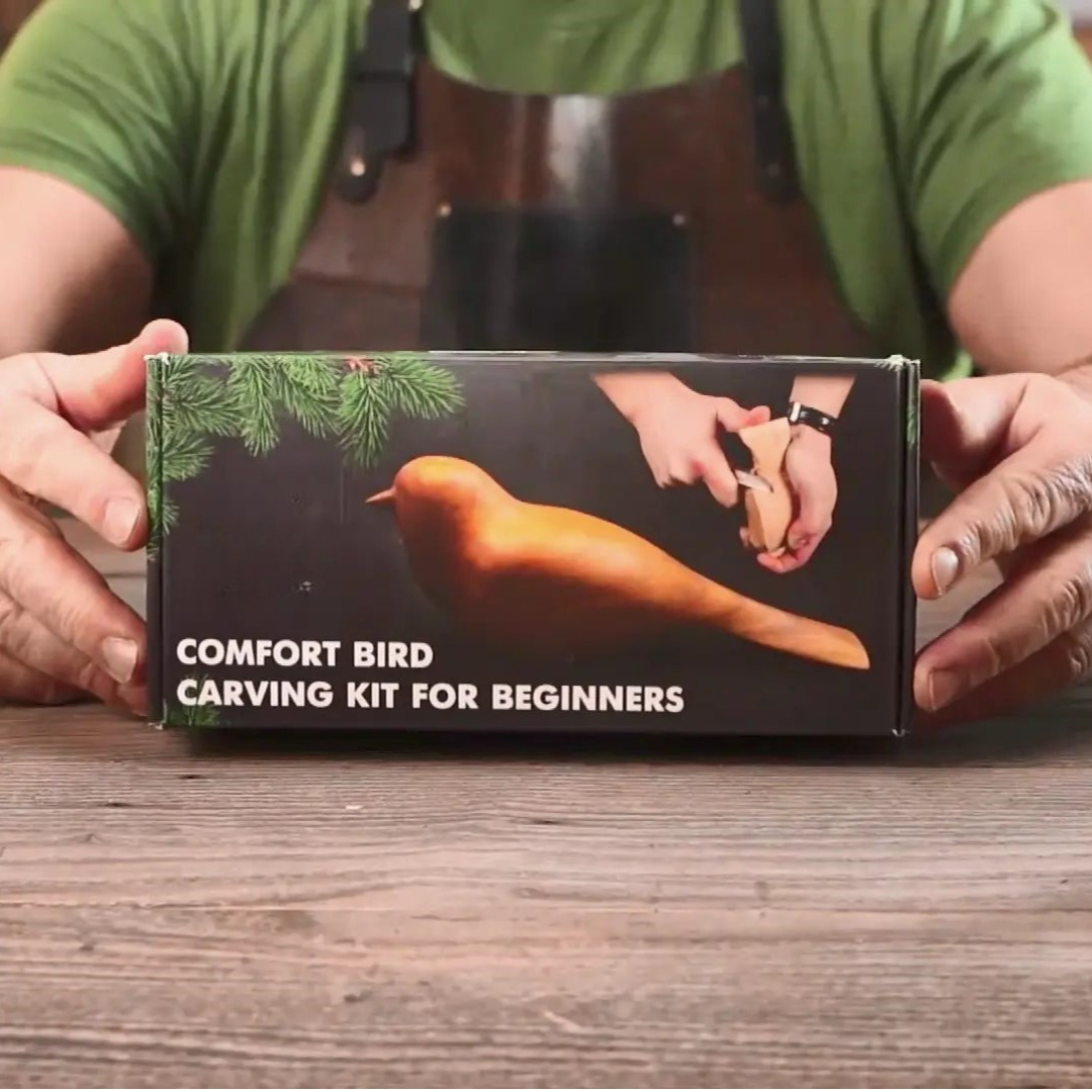 Simply unpack the kit and follow the step-by-step instructions or video tutorial. With two types of wood (cherry & basswood), a sharp whittling knife, bird template, and sharpening essentials, youβll learn how to transform raw wood into a smooth, polished comfort bird figurine. The process builds creativity, patience, and hands-on skills while keeping it fun and approachable.